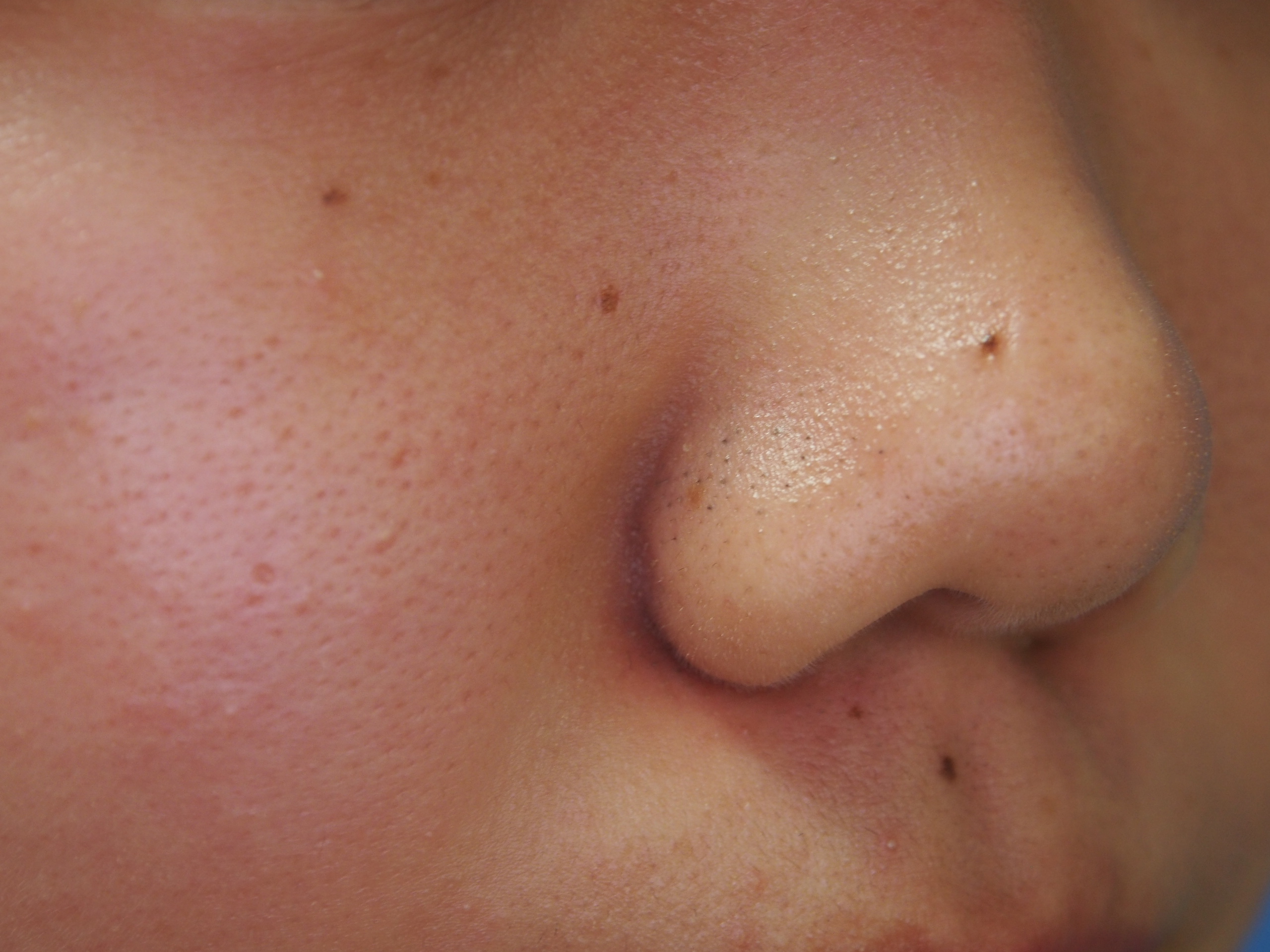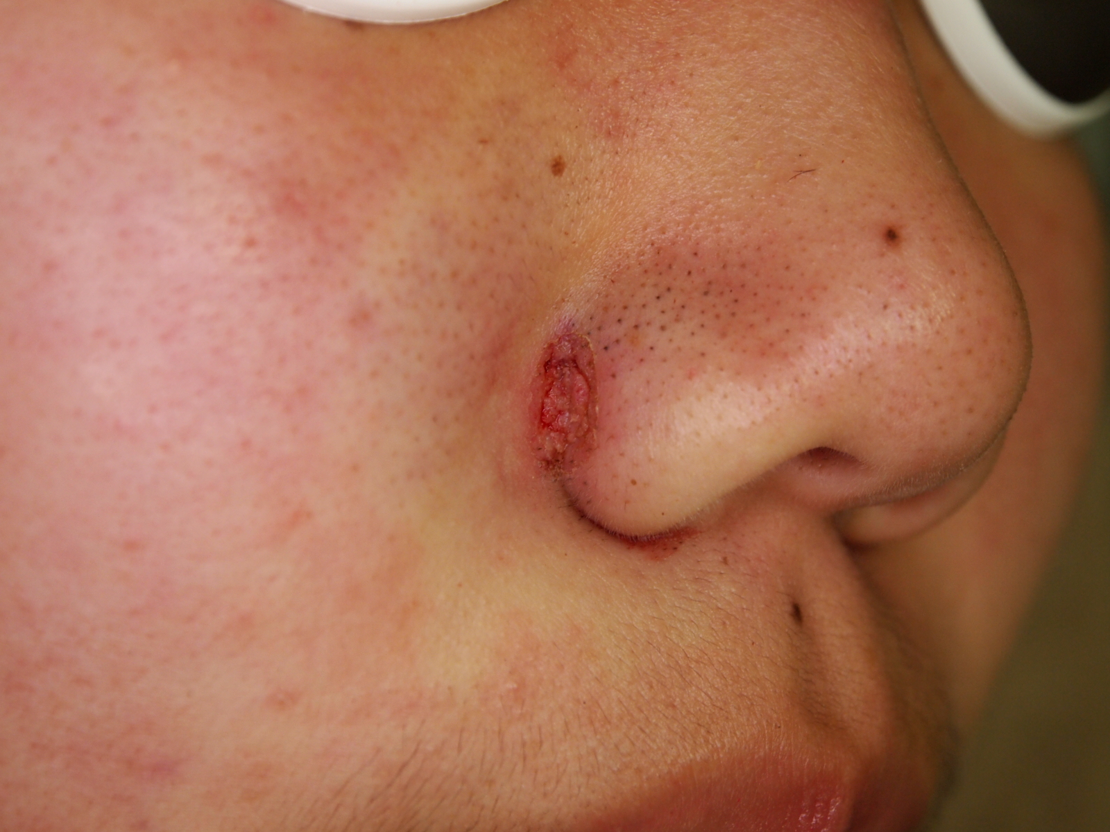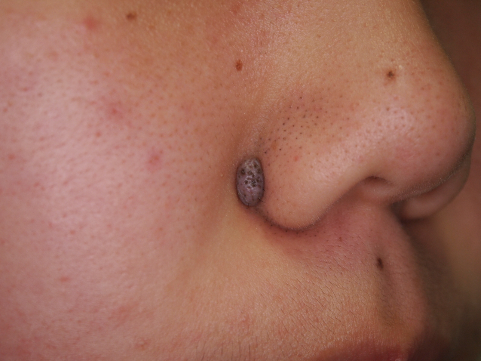 鼻の横にあるホクロをCO2レーザーで切除した症例写真です。