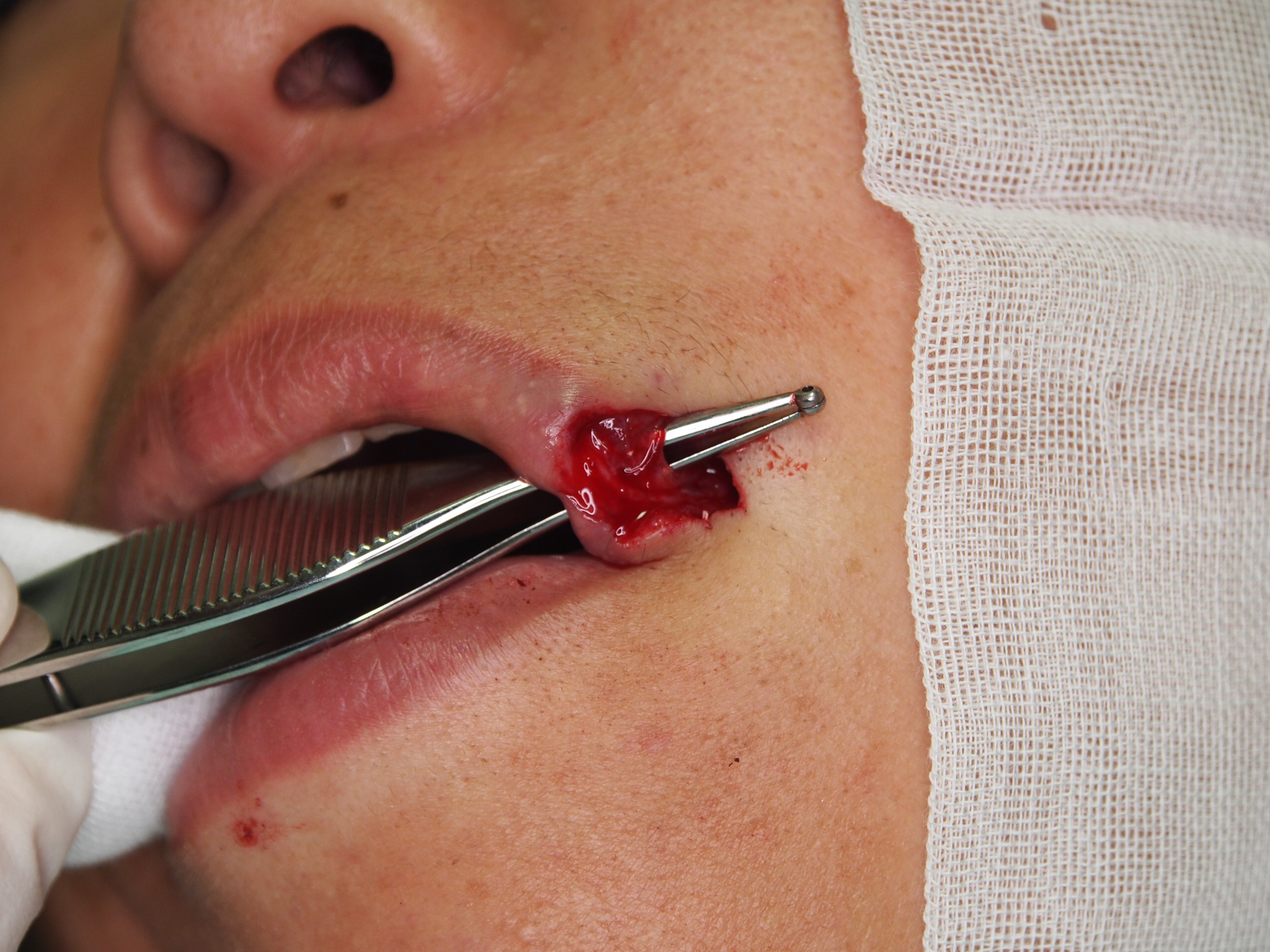 この方は皮膚から口腔内の粘膜まで貫通していたので