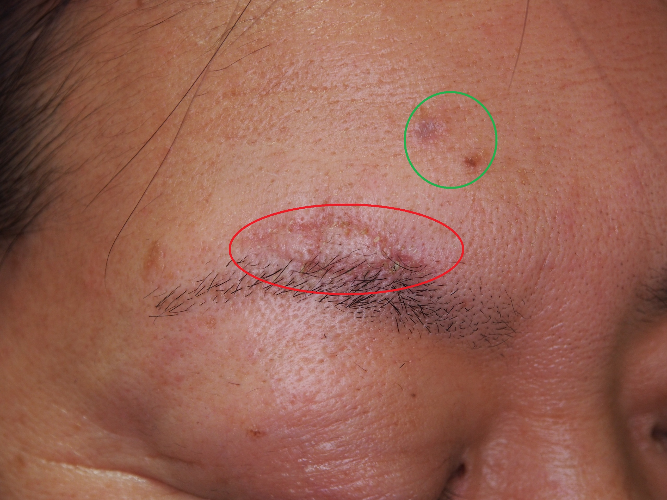 手術前(赤い枠のホクロ)