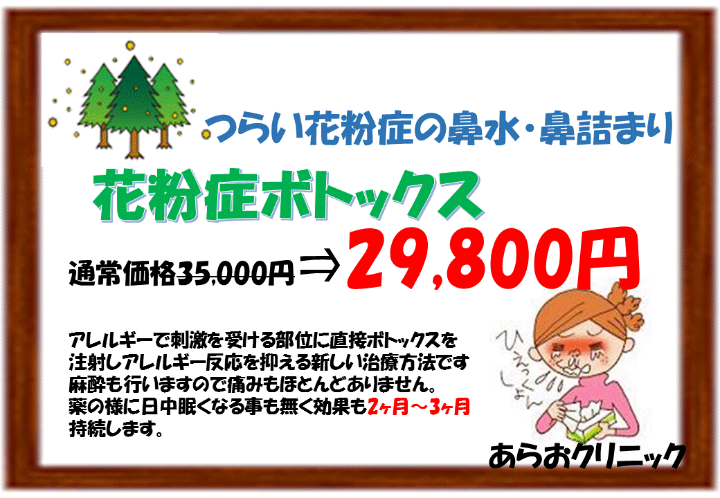 当院では 2月より花粉症ボトックスのキャンペーンを行っています