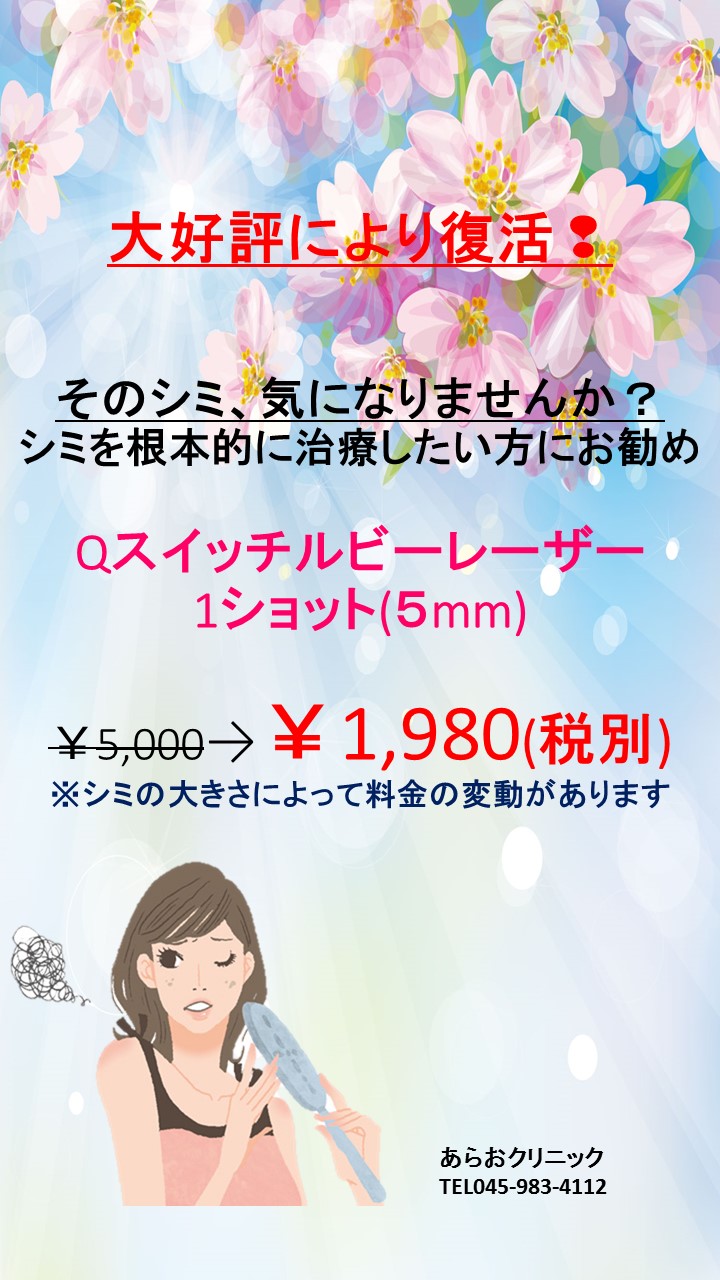 4月のキャンペーンとしてシミ取りレーザーが始まりました